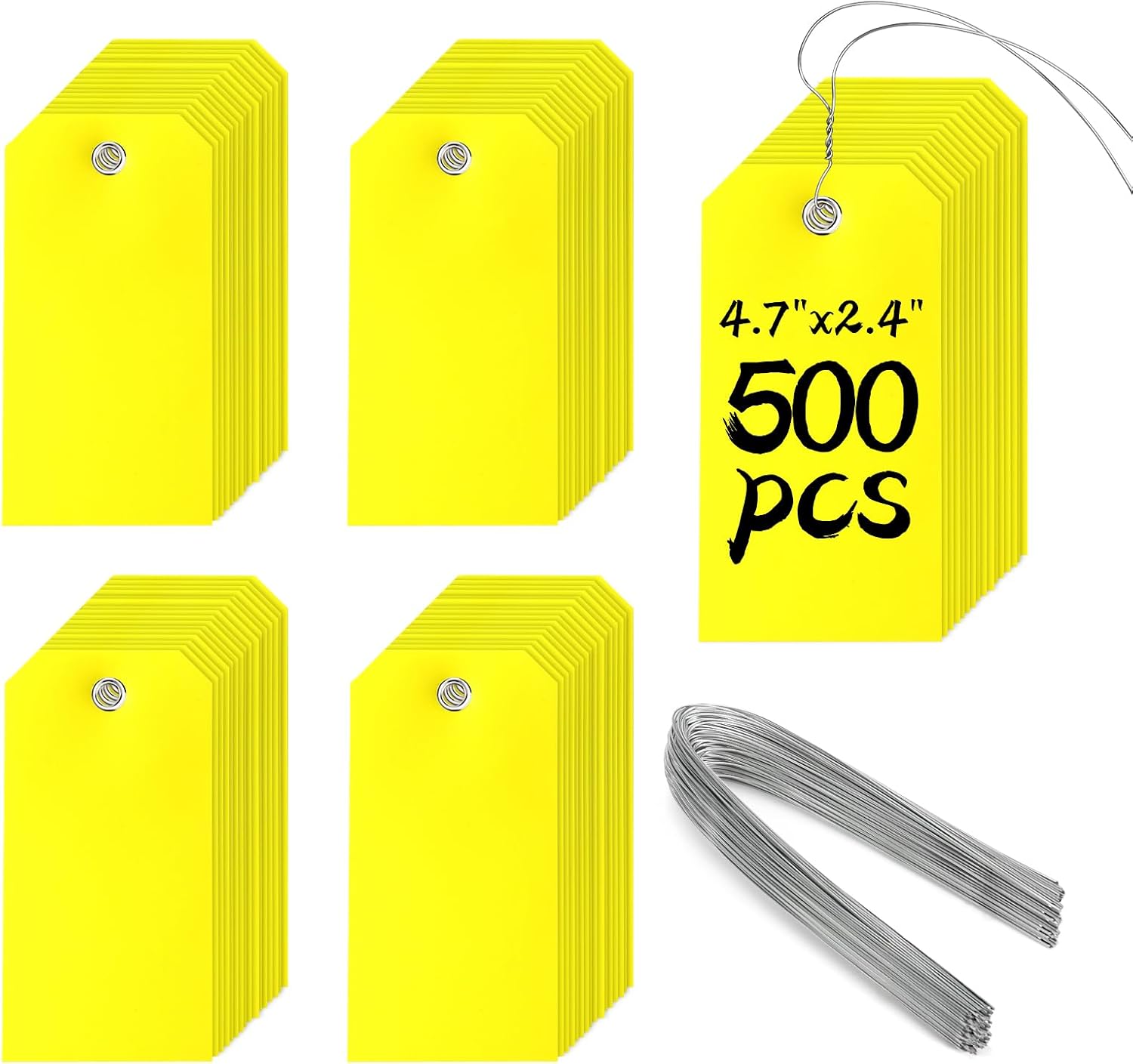 500 Pieces Plastic Shipping Tags with Wire Waterproof Hang Tags Heavy Duty Labeling Tags with String Wires Tags Labels Labeling Tags Stacking Tags for Equipment Car Parts (Yellow, 4 3/4 x 2 3/8)